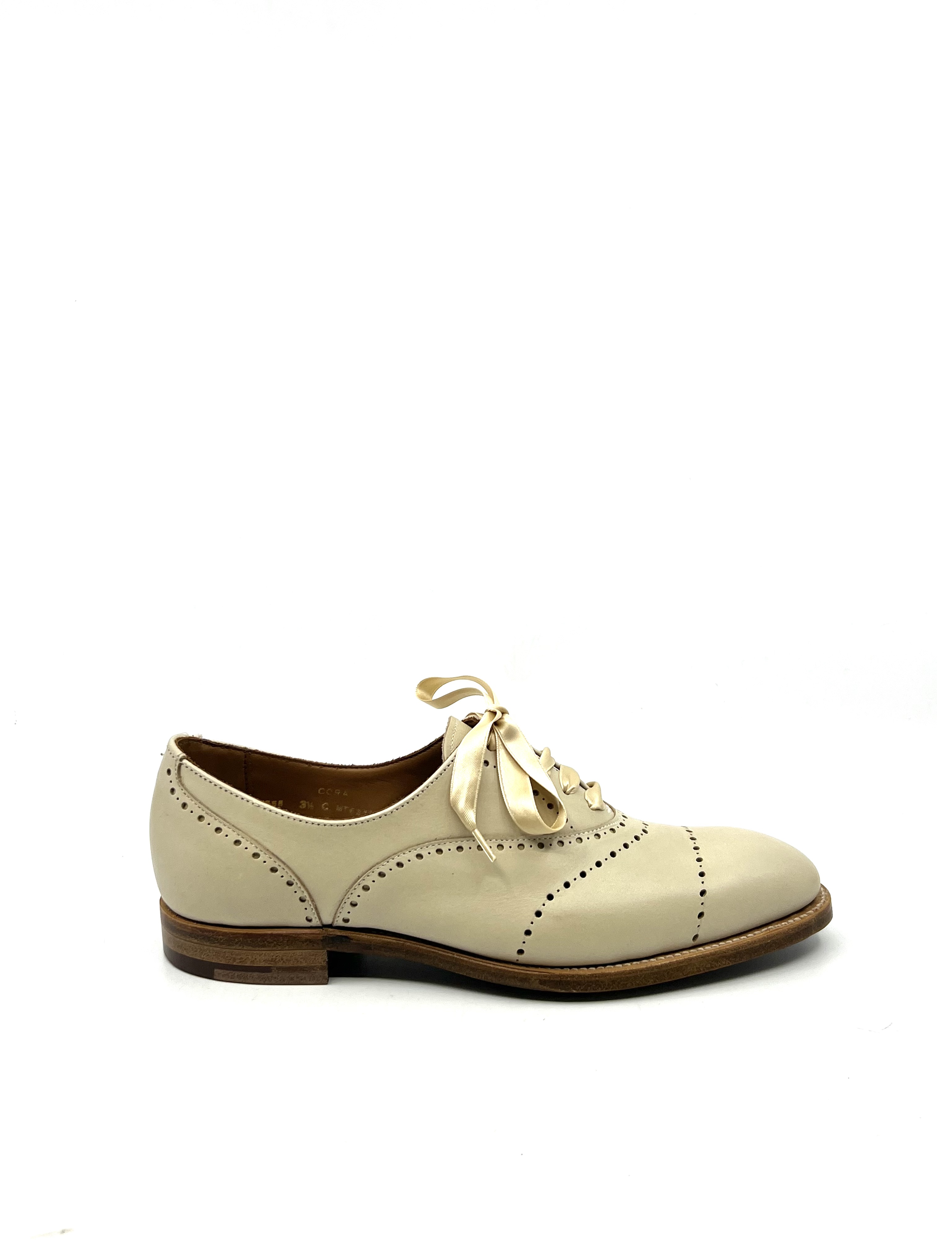 Ce Richelieu Cora de chez Crockett and Jones en cuir lisse ivoire, est cousu Goodyear sous gravure (forme 617). Ce modèle bout rapporté d’une rare élégance est un incontournable de la célèbre marque. De fabrication anglaise, ce modèle allie confort et élégance en toutes circonstances.