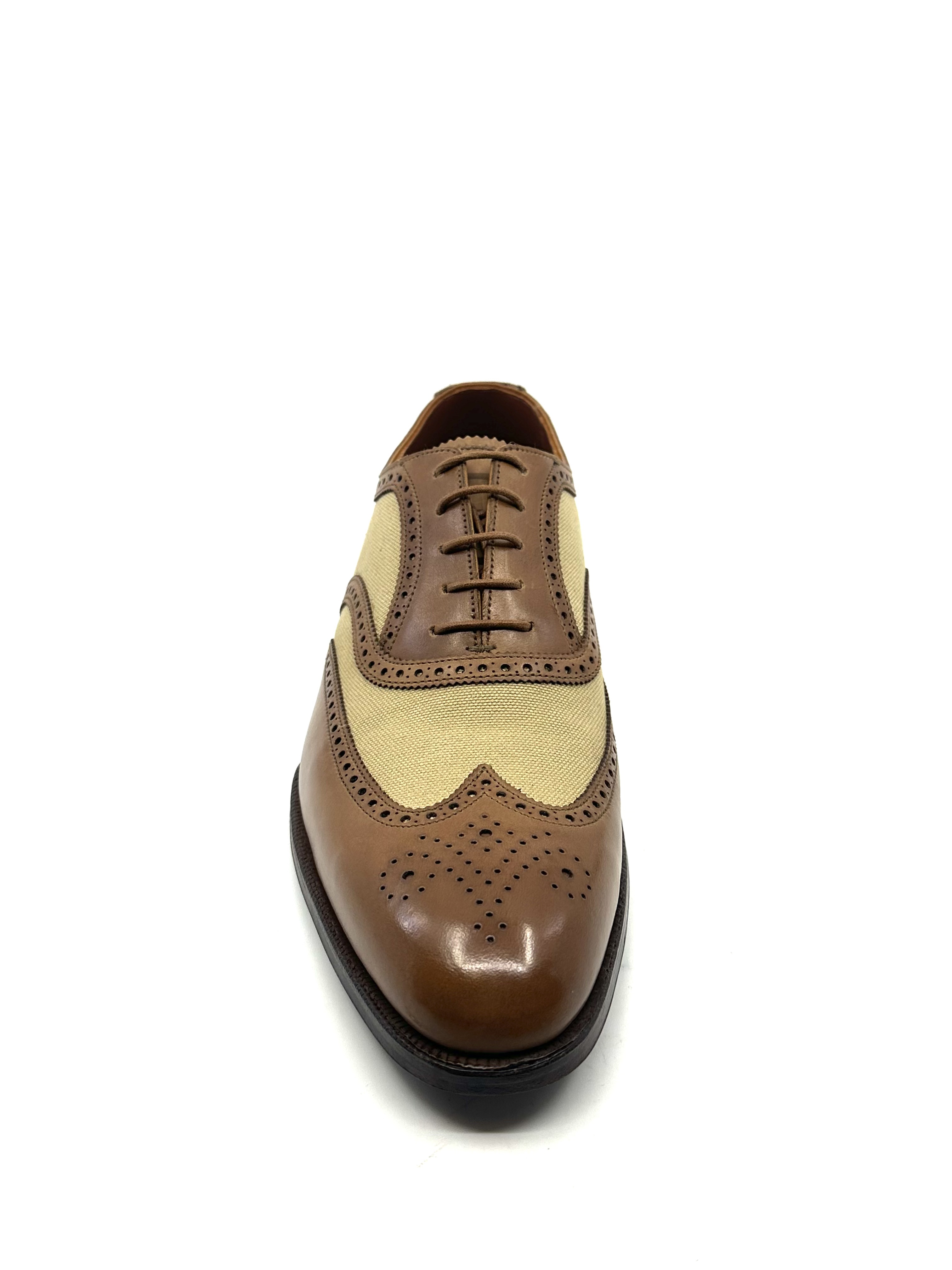 - Type de produit : Richelieu cuir lisse et toile bout golf fleuri